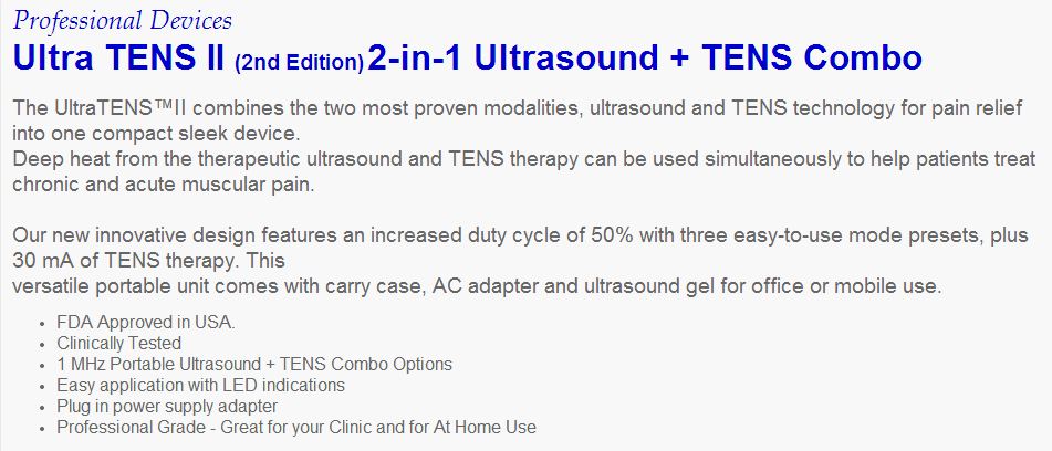 เครื่องอัลตราซาวด์กายภาพแบบพกพา Ultra TENS 2nd Edition 2-in-1 Combo: Ultrasound + TENS Stimulation Combo